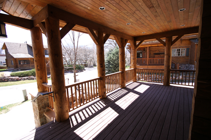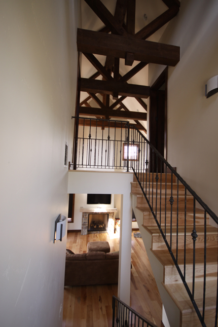 Given the relatively small allowable floor area, the open floor plan is used to maximize the main living area and creates a bright spacious interior. The living room further enhances this with a soaring cathedral ceiling that dramatically increases the interior volume. The large patio doors open to an oversized porch that extends the living area even further.