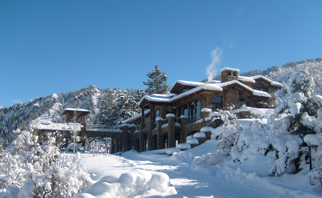 Located close to top of a hill in Meadowood Subdivision this house commands stunning views of the mountains and the valley below. The main living areas are located on the middle floor to capitalize on this asset. Up to 4000 square feet of decks and patios extend out from this level in all directions to form outside living and entertaining areas. One of them extends out over the driveway in the form of a stone bridge to a view platform located over the studio.