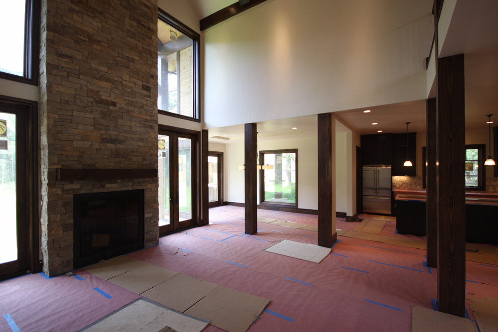 The lot is rather long and narrow and this natural axis is maintained in the floor plan by lining up the front entry with the bridge great room and fireplace creating a natural progression from the entry to the back of the house. Doors on either side of the fireplace open the Great room up to the large back yard completing the picture.